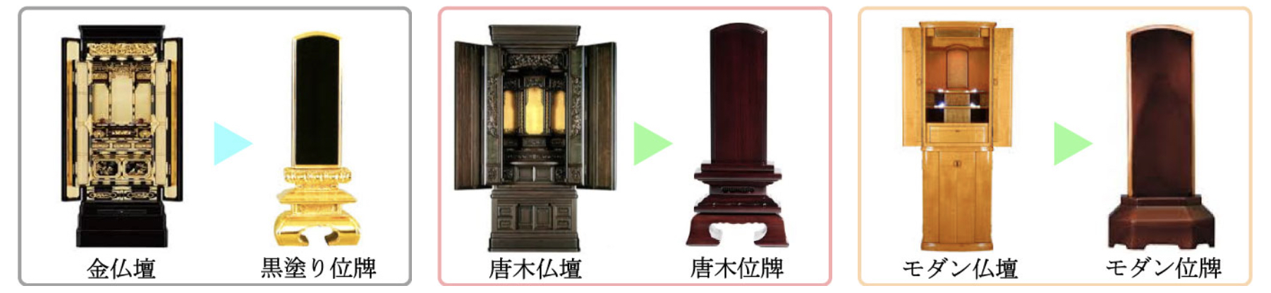 まずは、お位牌の種類やデザインを決めてください。お位牌には、伝統的な黒塗り位牌をはじめ、日本家屋にも使用される紫檀や黒檀で製造された唐木位牌、モダンなお仏壇に合うモダン位牌など様々なデザインや種類がございます。